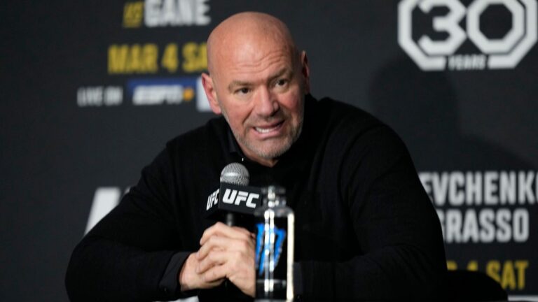 LAS VEGAS, NV – DECEMBER 10: Dana White appears at the UFC 282 post-fight press conference on … More December 10, 2022, at the T-Mobile Arena in Las Vegas, NV. (Photo by Amy Kaplan/Icon Sportswire via Getty Images) Icon Sportswire…
