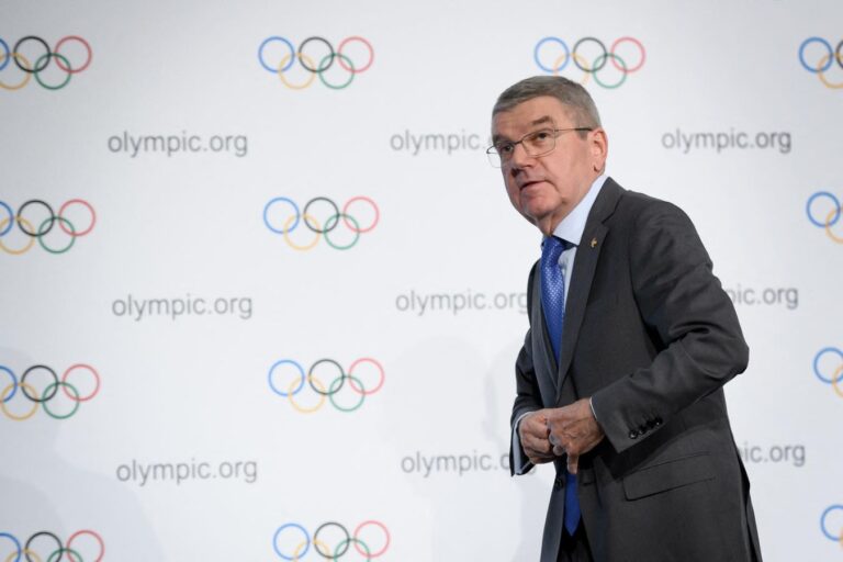 TOPSHOT – International Olympic Committee (IOC) president Thomas Bach leaves a press conference … [+] following an executive board meeting at the IOC headquarters in Lausanne, on December 5, 2019. – The Russian case will dominate the IOC Executive Board…