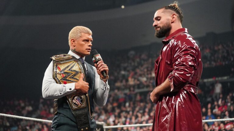 CINCINNATI, OHIO – FEBRUARY 24: Cody Rhodes and Seth Rollins speak during Monday Night RAW at … [+] Heritage Bank Center on February 24, 2025 in Cincinnati, Ohio. (Photo by Heather McLaughlin/WWE via Getty Images) WWE via Getty Images The…