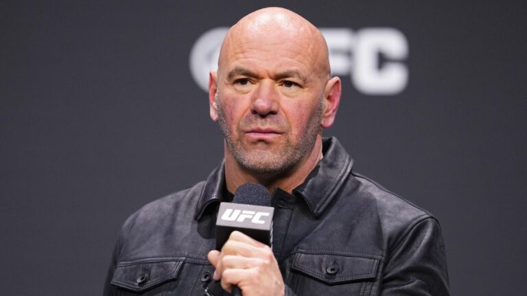 LAS VEGAS, NEVADA – DECEMBER 15: UFC CEO Dana White is seen on stage during the UFC 2024 seasonal … [+] press conference at MGM Grand Garden Arena on December 15, 2023 in Las Vegas, Nevada. (Photo by Chris Unger/Zuffa…