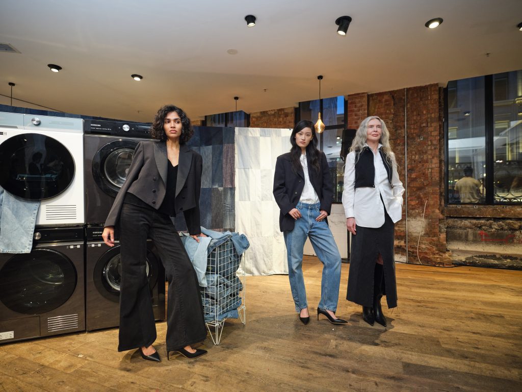 E.L.V. Denim’s presentation was set against a backdrop of Samung’s Series 6 Washing Machines and Tumble Dryers. The range offers features that help reduce energy consumption by up to 70 percent and decrease the amount of harmful plastic microfibers clothes shed by up to 54 percent.