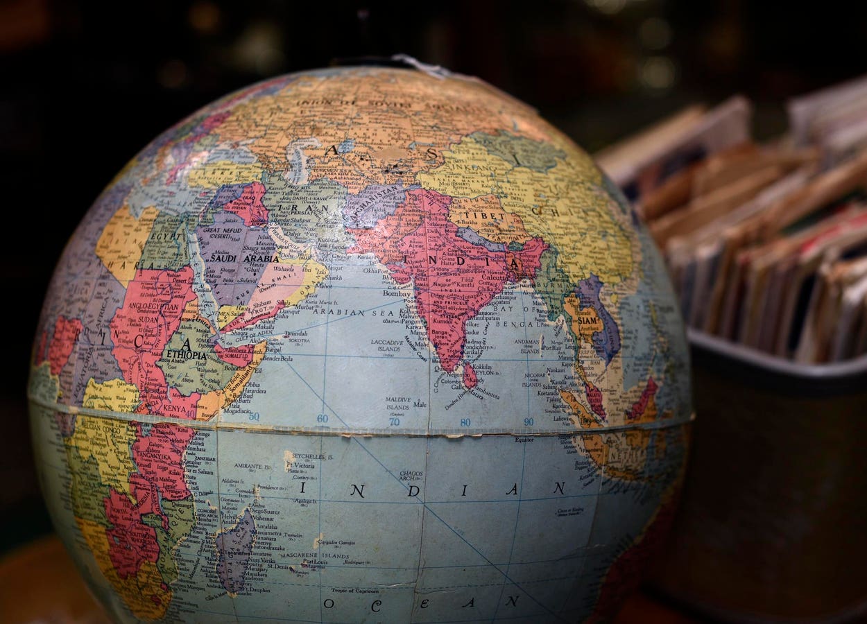 SANTA FE, NEW MEXICO – DECEMBER 9, 2019: A vintage globe of the world for sale in an antique shop … [+]