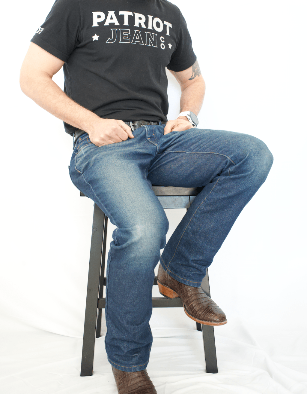 Mate began connecting the dots. Patriot Jean Co. sources fabrics from Mount Vernon in Georgia. The jeans are stitched in Texas. He partnered with Christine Rucci, denim expert and founder of Godmother NYC, Inc., to develop fits.