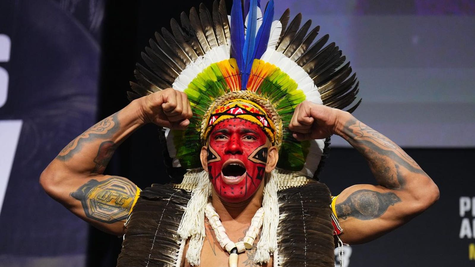 At the ceremonial weigh-ins, neither man was giving an inch. Pereira showed up dressed to go to war, but Ankalaev looked unfazed. Here is a look at the interview with the challenger, as captured by Krazy Kev.
